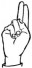 На ћирилици написано ЕЛЕНА ЈОВЕЉИЋ састоји се из 12 слова [?]. Исписано ћириличном једноручном азбуком за глувонеме: